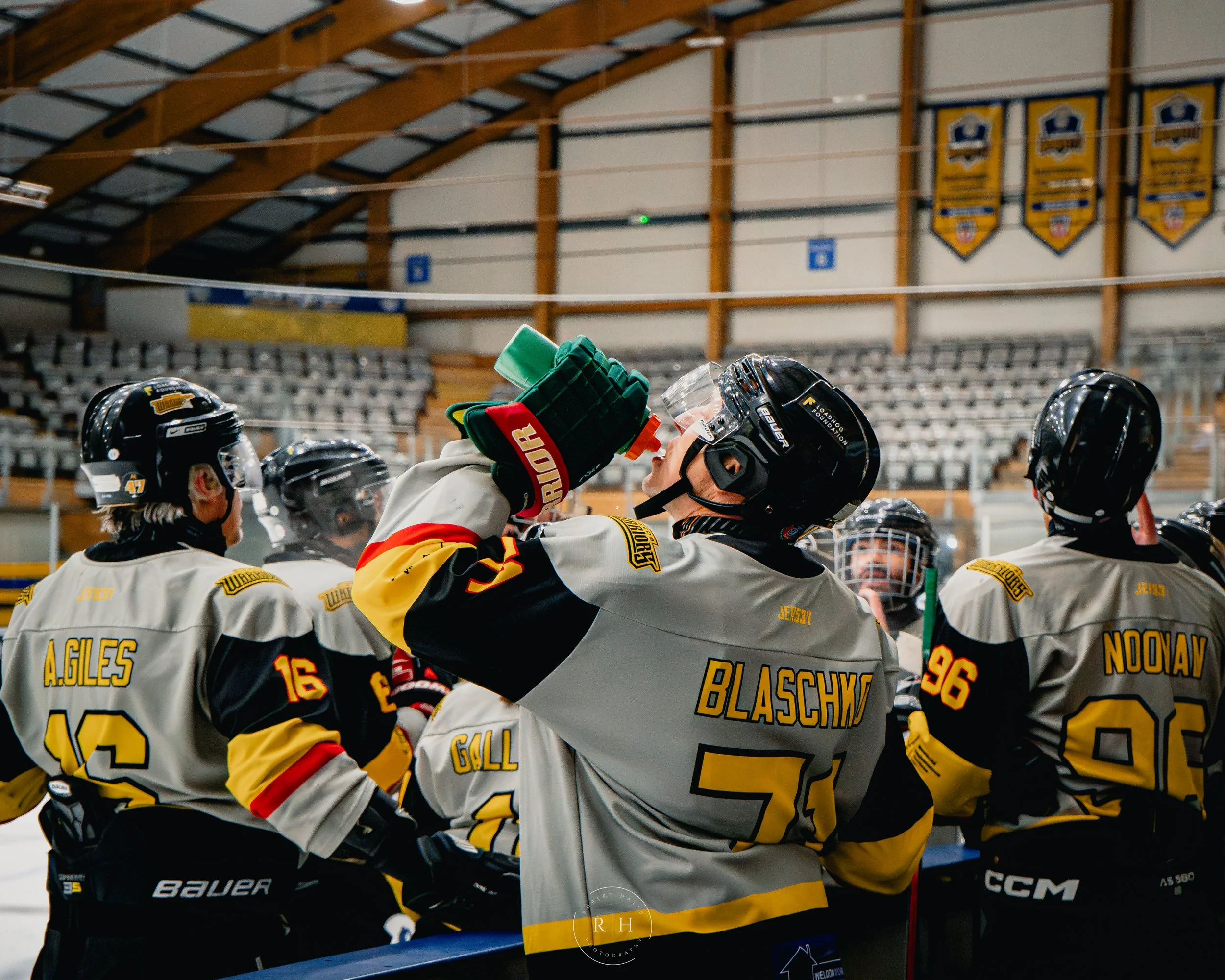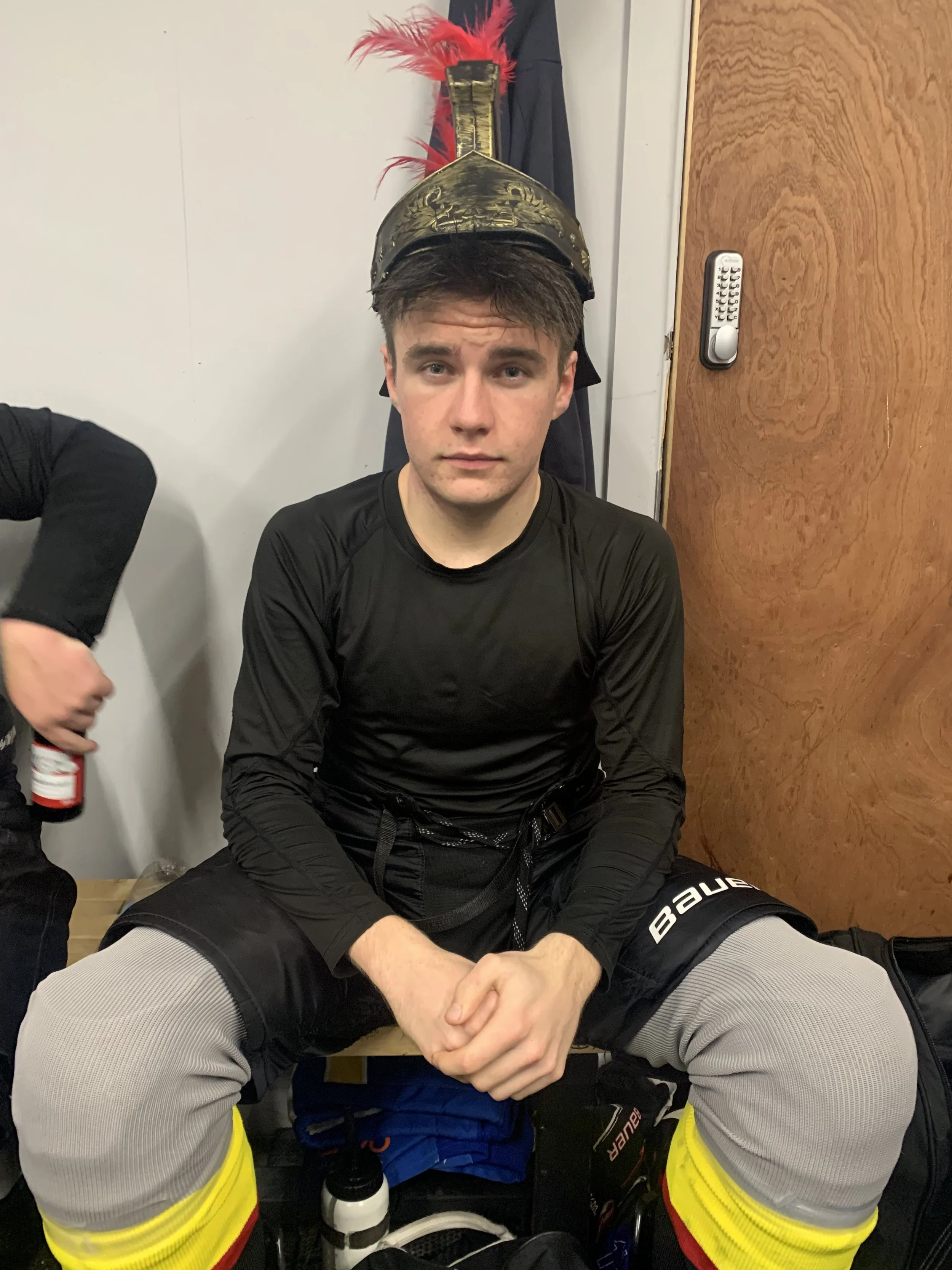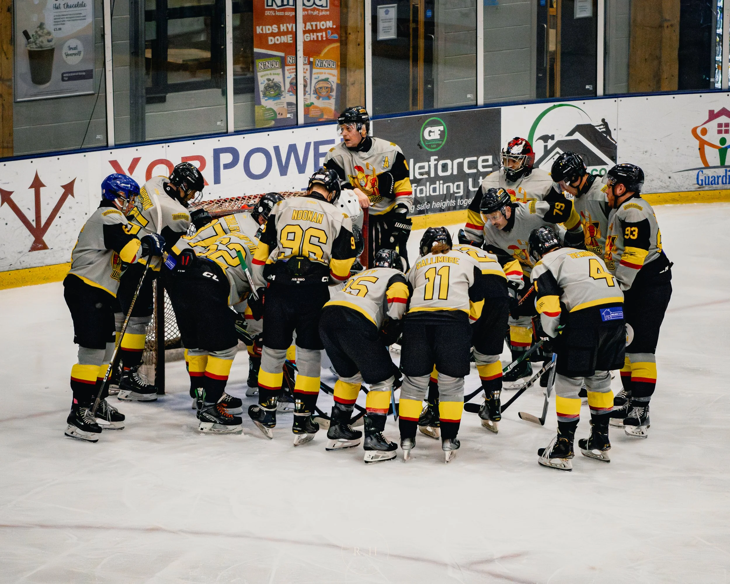They gathered around their net during the first interval for a Captain pep talk. They were clearly going to come out swinging in the second period and the Warriors needed to be ready.